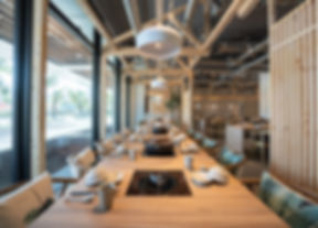 餐飲團隊以當季台灣在地食材選用、全無加工製品使用、獨一研發特色湯底與多文化用餐模式融和佐上以白色/光為基調與全日本檜木打造之層疊立面架構浮島蒔Maku Hotpot 獨美之飲食體驗。